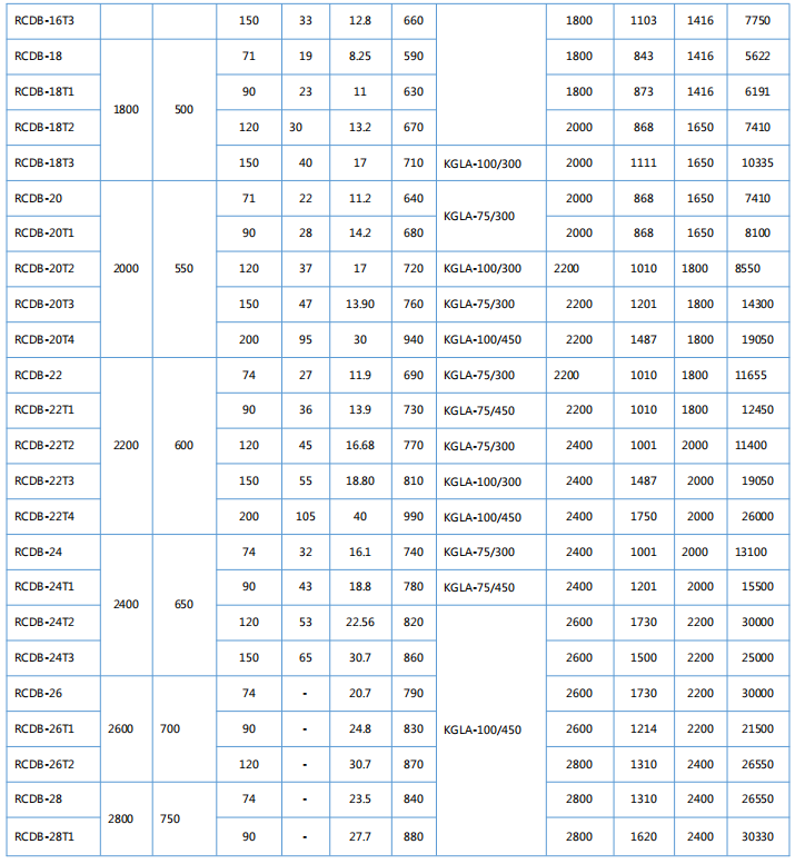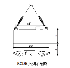 四、RCDB系列懸掛盤式自冷電磁除鐵器主要技術參數、外形尺寸                      執行標準:JB/T7689